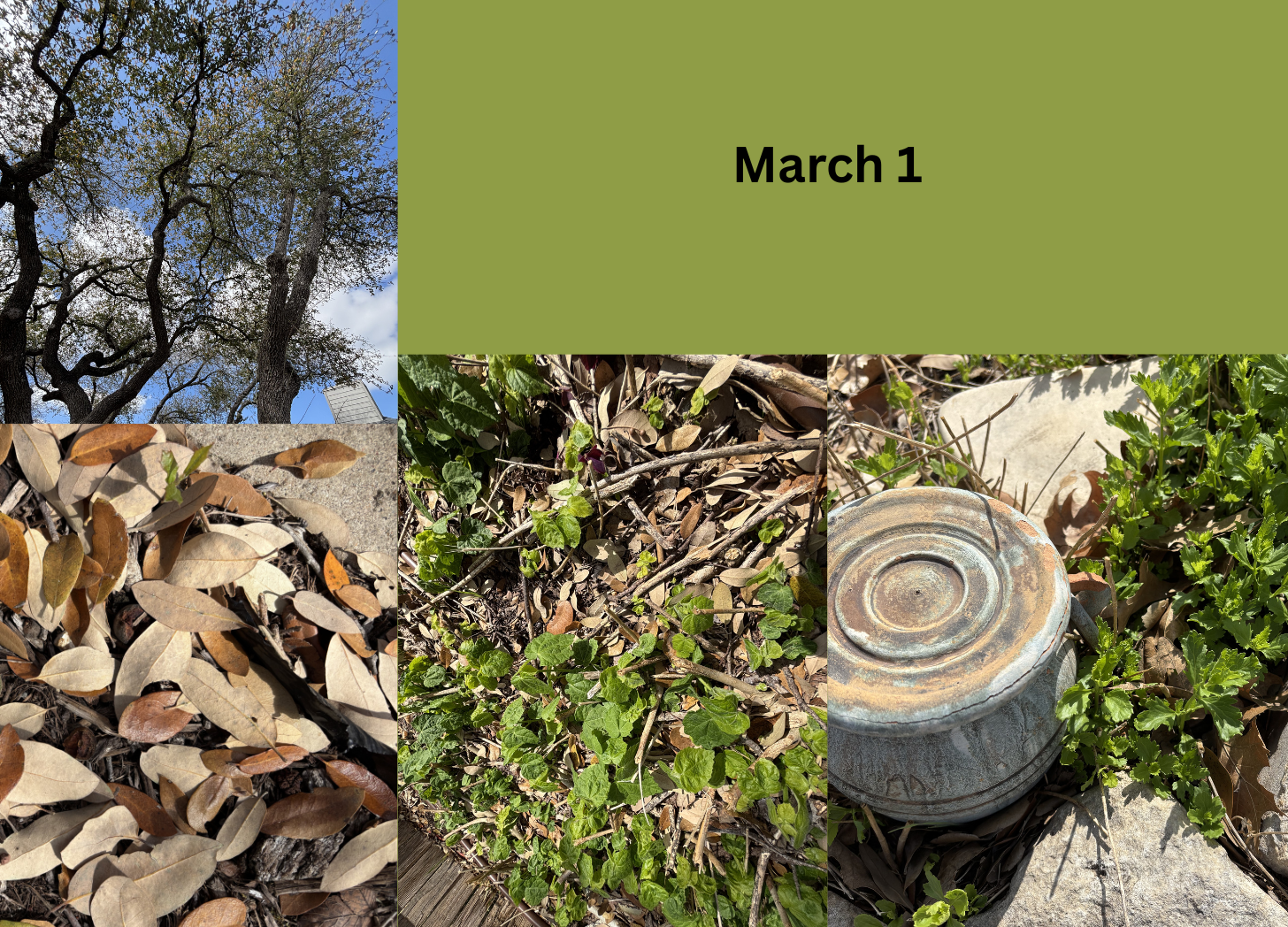 We have several ‘Live Oak’ trees. They are not true “evergreen” but they do keep their leaves year-round. What makes them different is they shed their old leaves generally in March while maintaining new growth. Their branches are never bare. So over the next several weeks, the leaves will fall continuously.