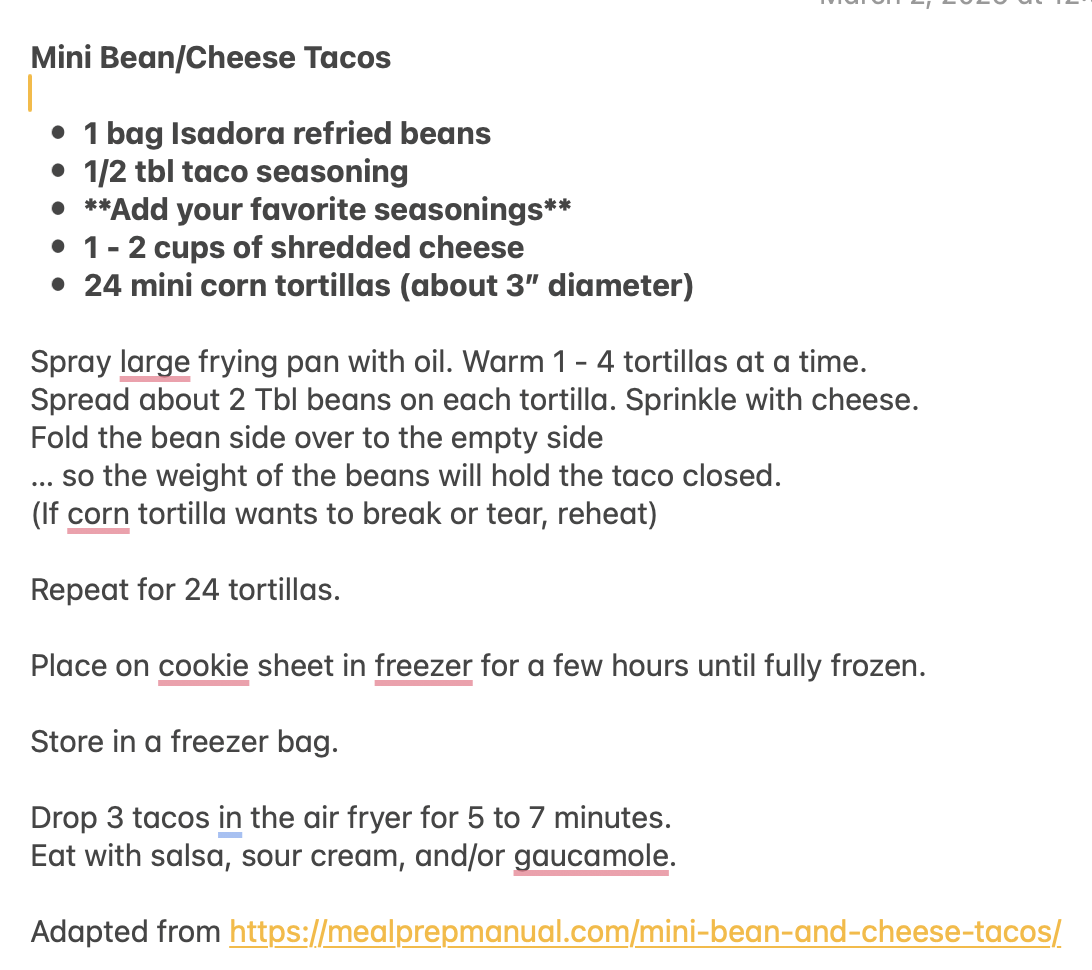 I also experimented with making my own snack sized mini cheese/bean tacos.